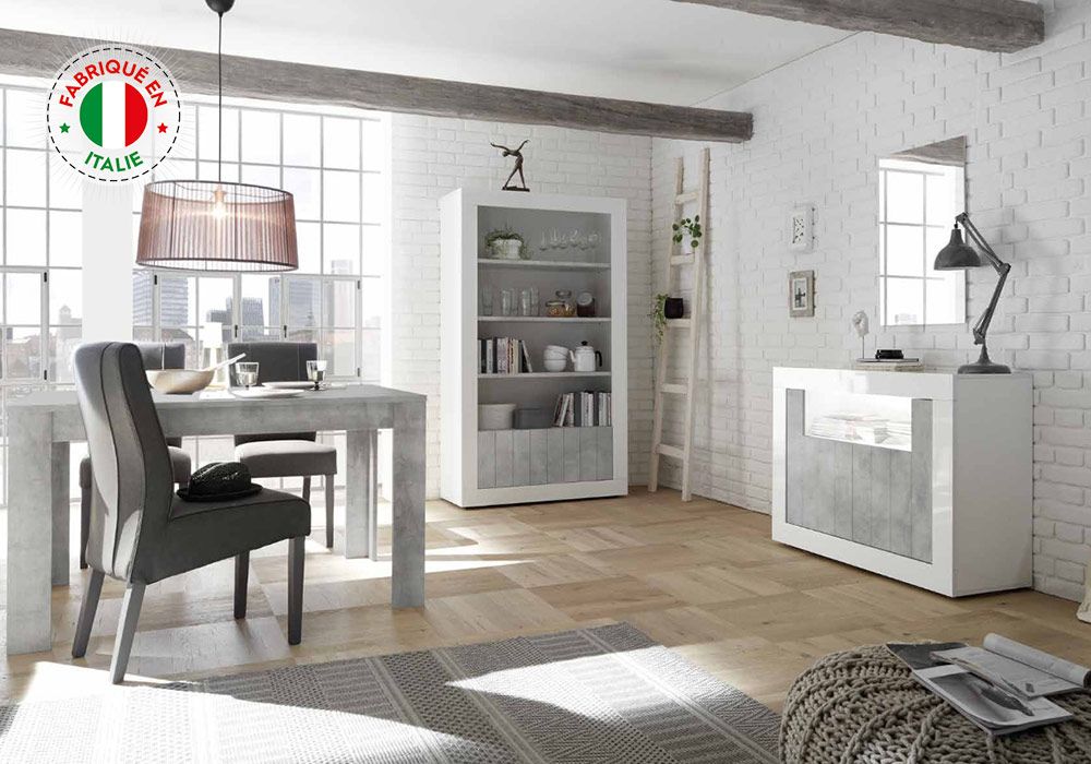 Argentier 2 Portes LED (Collection Amina Blanc/Béton)