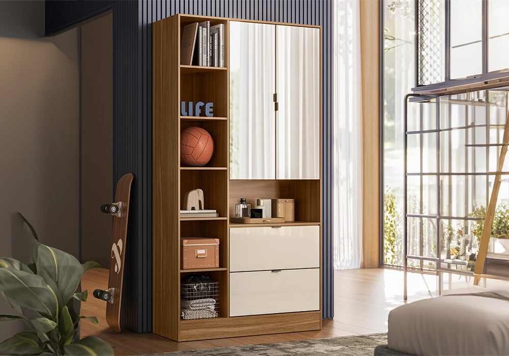 L’armoire Joy à la fois tendance et pratique saura parfaitement s’intégrer à tout style de décoration. Côté rangement, ce modèle vous offre 2 portes et 2 tiroirs. Avec un design élégant ce modèle ornera avec charme la pièce, tout en restant pratique.