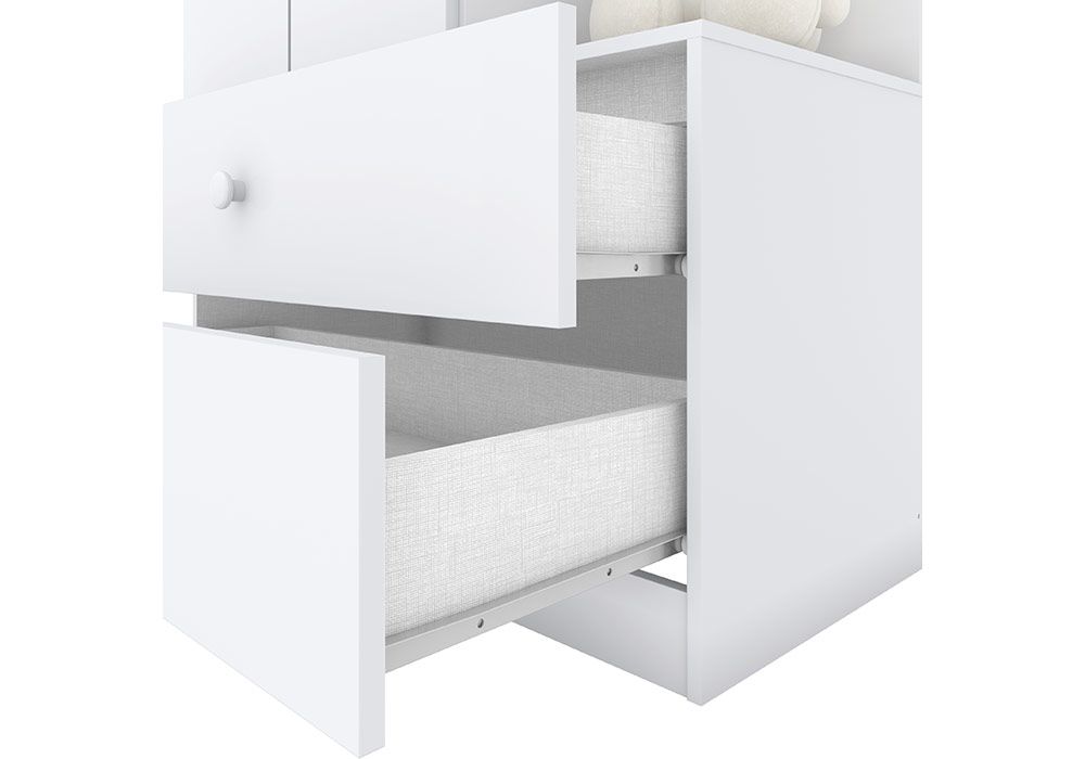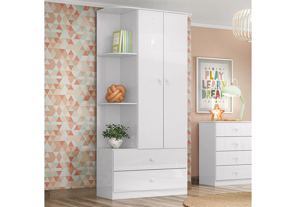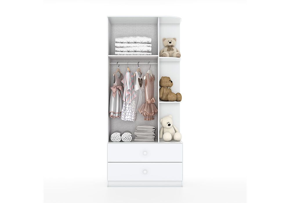 Cette armoire 2 portes et 2 tiroirs est un dressing au look intemporel et solide. Elle est particulièrement adaptée pour les chambres d’enfants et de bébés. Son intérieure offre beaucoup d’espace.