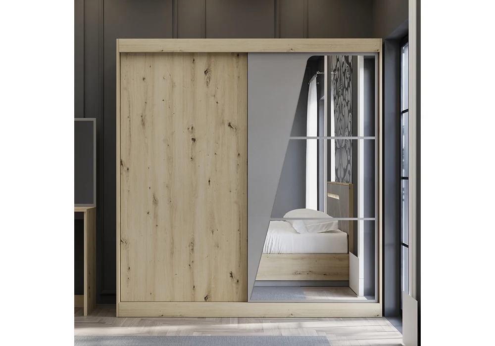 Avec son design contemporain, cette armoire s’intègre parfaitement à tous les styles de décoration. Les portes coulissantes, à la fois pratiques et esthétiques, offrent un accès facile à vos vêtements tout en optimisant l’espace de votre pièce.