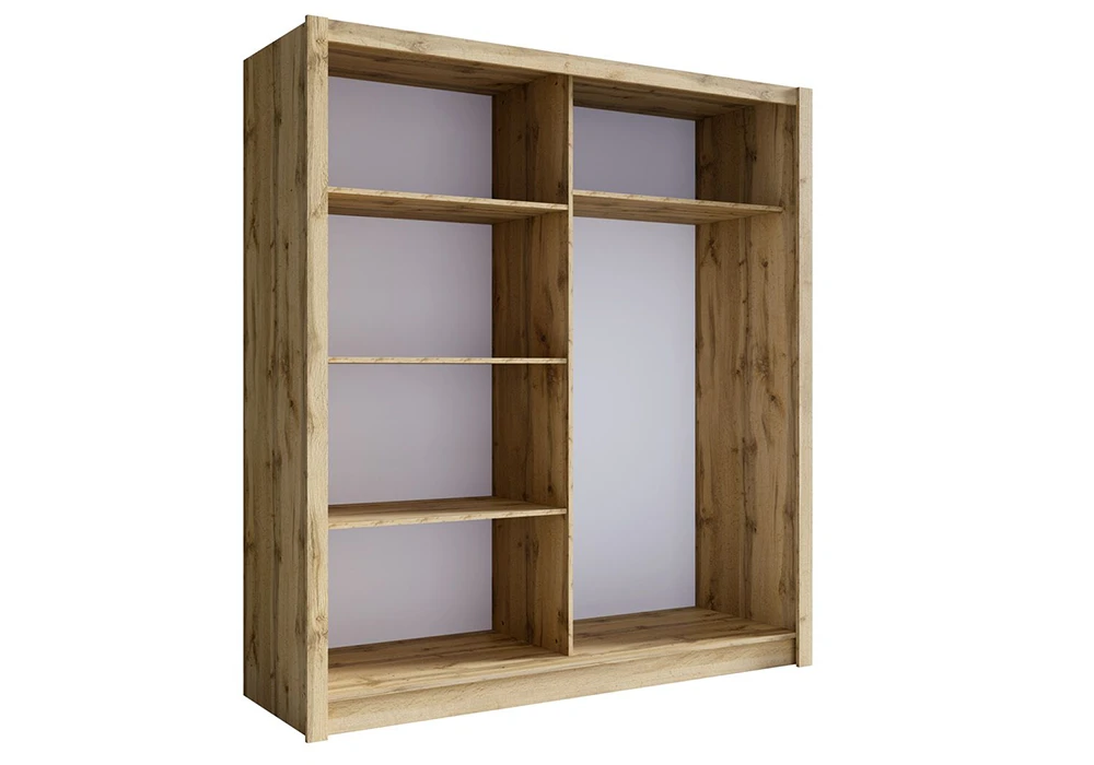 Sa structure robuste fabriquée en panneau de particules recouvert de papier de coloris chêne offre solidité et durabilité, tout en ajoutant une touche de modernité à votre décoration intérieure. Les portes coulissantes permettent une ouverture facile et fluide, optimisant l’espace même dans les pièces les plus compactes.