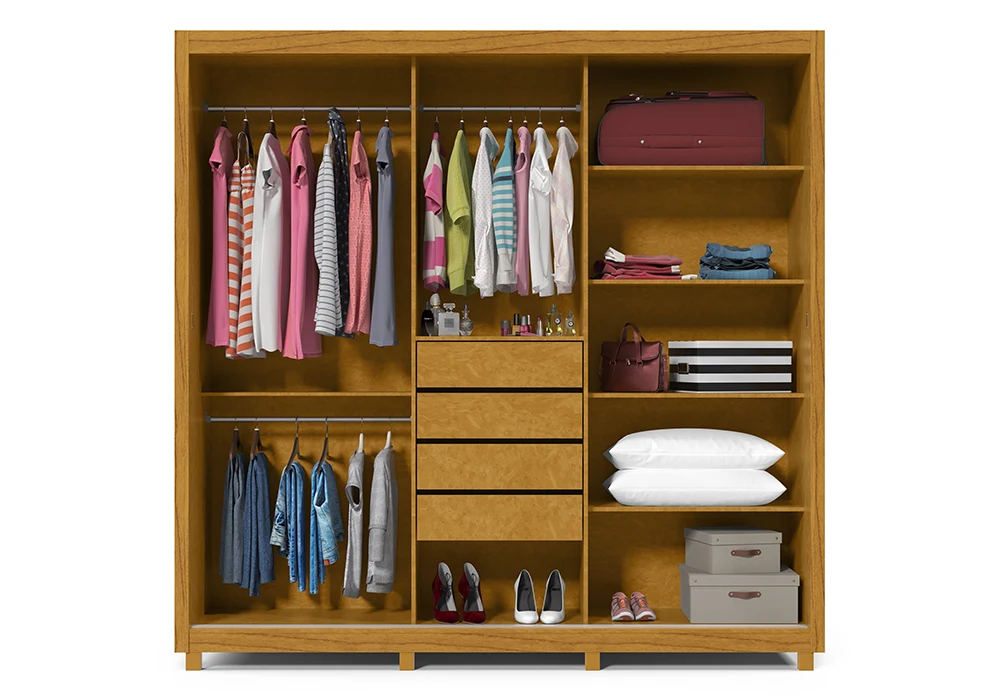 À l’intérieur, vous profitez d’une grande capacité de rangement, parfaitement agencée pour répondre à tous vos besoins : penderies, étagères et tiroirs permettent une organisation simple et efficace de vos vêtements, chaussures et accessoires. Chaque espace est pensé pour maximiser le confort et la praticité au quotidien.