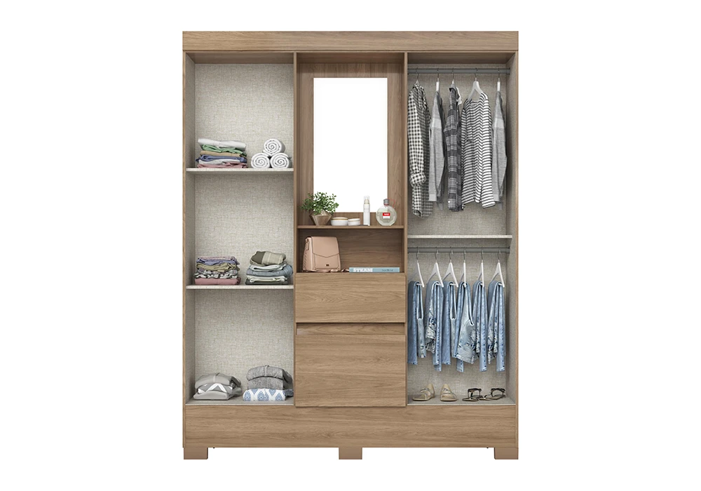 Avec ses nombreux rangements cette armoire vous permettra de ranger vos vestes et robes ainsi que vos pantalons et t-shirt! Ce meuble vous aidera à organiser toute votre garde-robe comme dans un dressing !