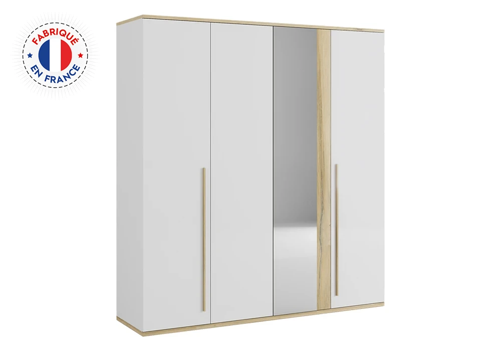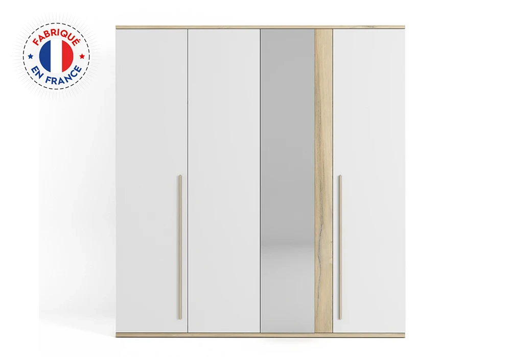 Les quatre portes avec un miroir central, offrent à la fois un espace de rangement généreux et une fonctionnalité pratique. Conçue avec des matériaux de qualité, cette armoire est faite pour durer. Le miroir intégré ajoute une fonctionnalité supplémentaire, vous permettant de vérifier votre tenue en un clin d’œil.