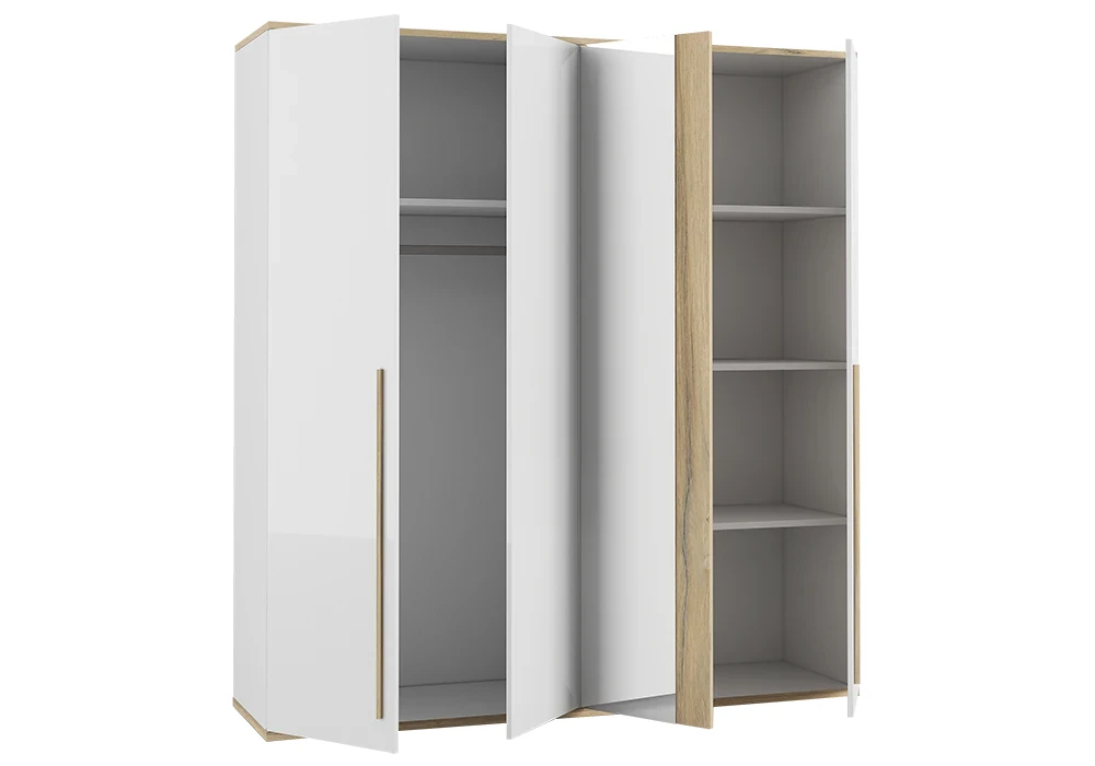 Spacieuse et pratique, l’armoire Mia est idéale pour organiser vos vêtements et accessoires. Le contraste entre le blanc pur et le bois naturel s’intègre parfaitement dans tout type de décoration intérieure