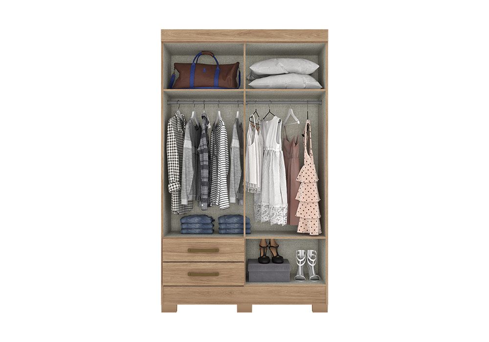 Qui ne rêve pas d’une armoire pour ranger ses vêtements et tout trouver en un clin d’œil ? Cette armoire composé de 4 portes et 2 tiroirs répondra parfaitement à vos besoins. Grâce à son coloris jequitiba noyer clair, elle se mariera avec une large gamme de meubles.