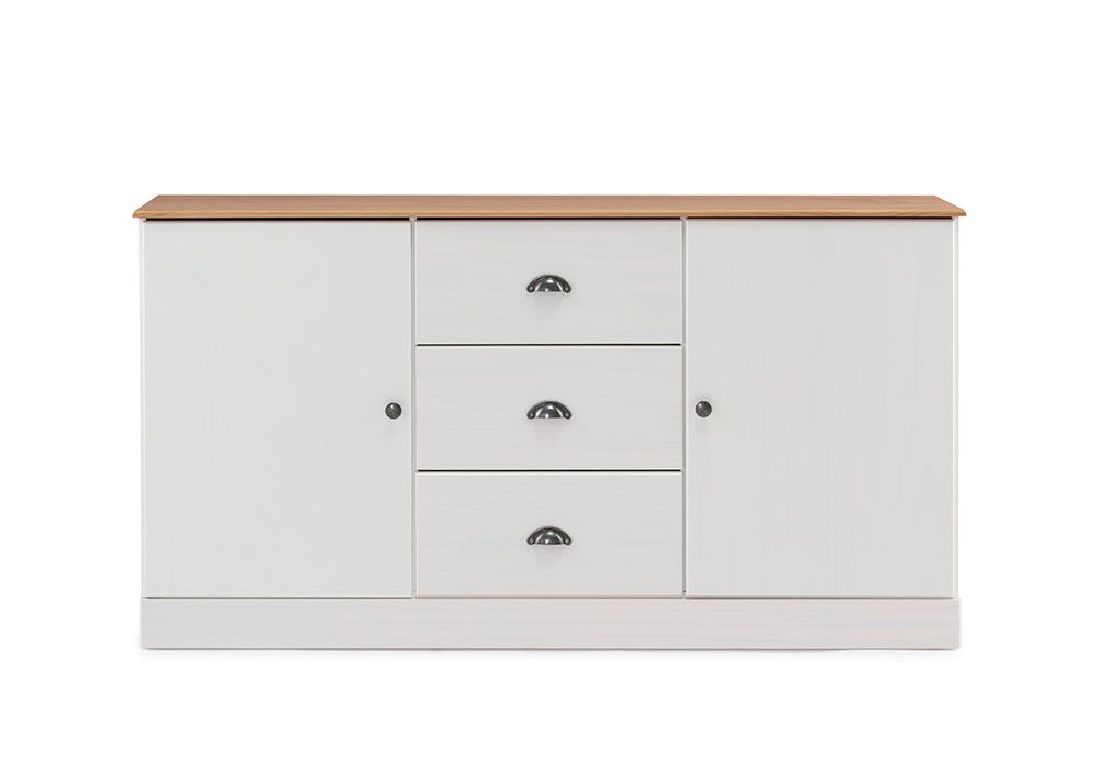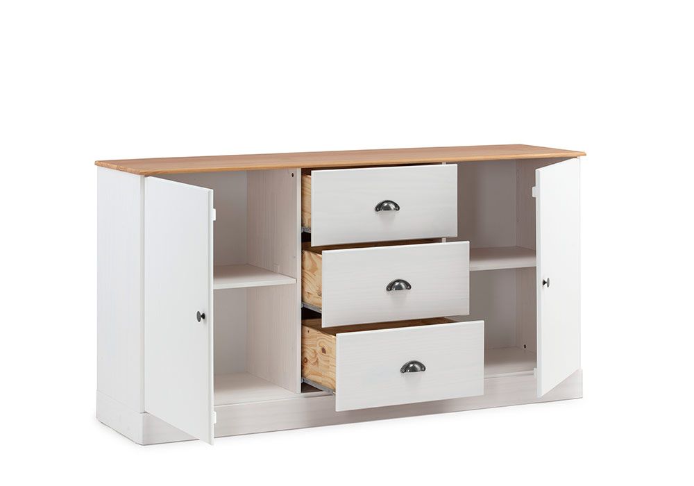 Vous apprécierez les finitions soignées qui mettent en valeur le style unique de ce bahut bas rustique. Les poignées des tiroirs modèles coquille sont elles aussi un grand classique du meuble en pin massif style campagne.