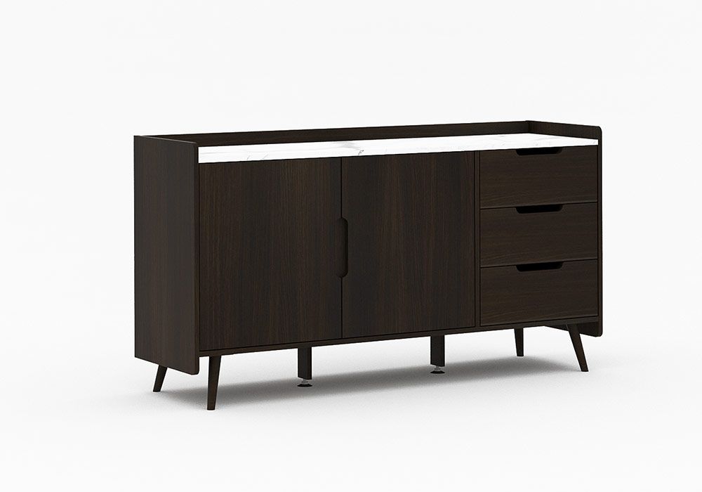 Structure en panneau de particules recouvert de papier coloris wenge et dessus imitation marbre blanc, 140x40xH75cm.