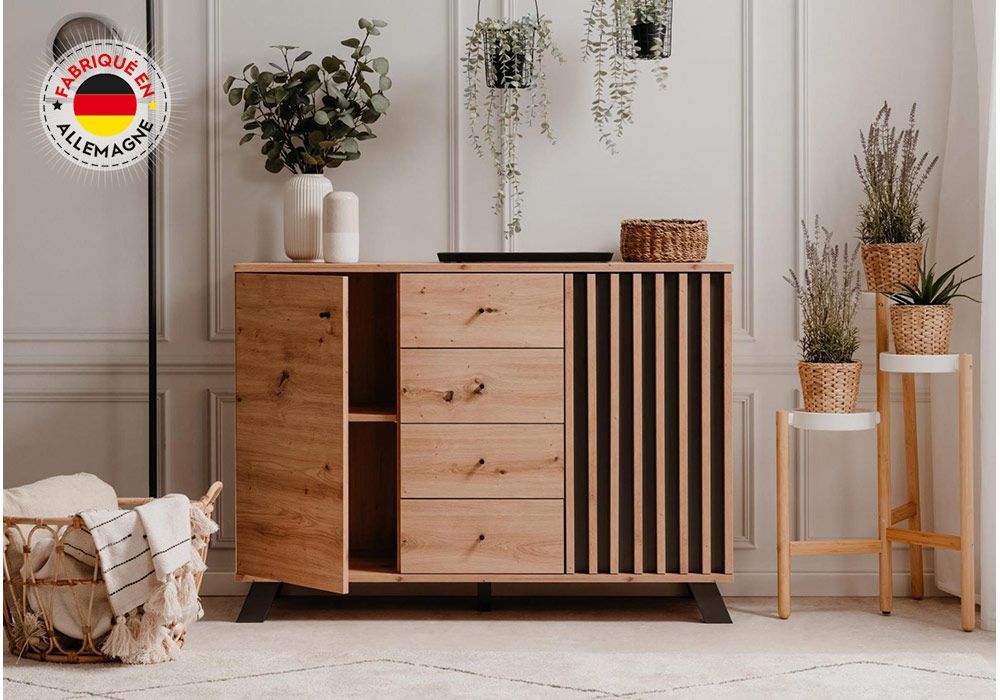 Son design contemporain en chêne et anthracite s’adapte parfaitement à tout type de décor, ce qui en fait un excellent choix pour n’importe quelle pièce de la maison.
