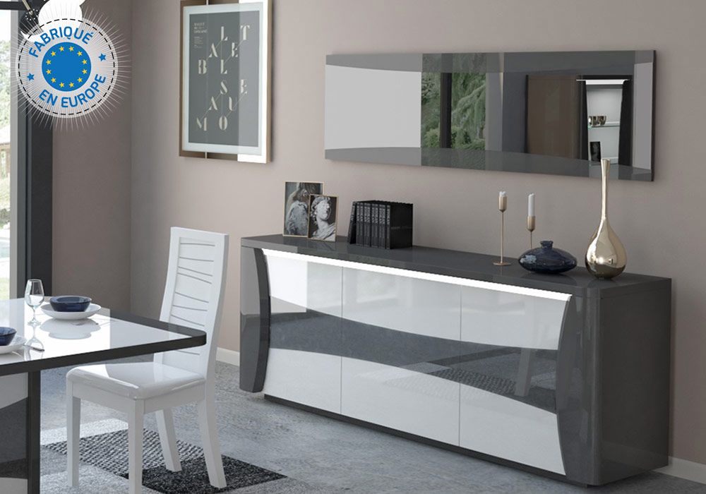 Bahut Bas 3 Portes avec Miroir et LED (Collection Tiago Laqué)