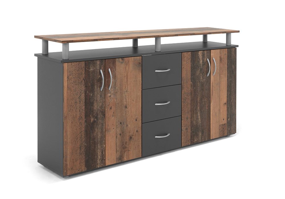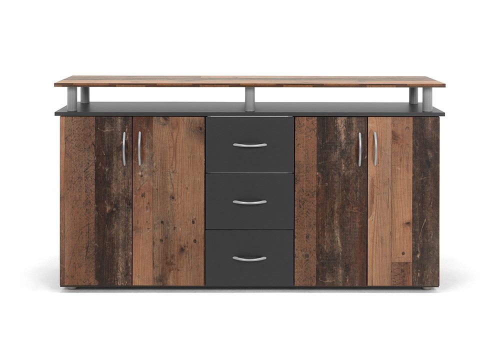 Le buffet Nevada s’intègrera parfaitement à la décoration de votre séjour. Avec sa combinaison des couleurs old style et anthracite, ce bahut bas apportera une ambiance moderne et industrielle à votre pièce. Ce buffet est doté de nombreux rangements qui vous permettront d’organiser votre vaisselle en toute simplicité.