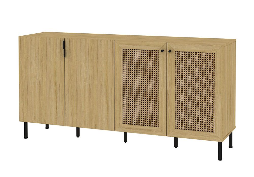 Structure en panneau de particules et cannage sur papier coloris beaufort oak, 160x40xH80cm.