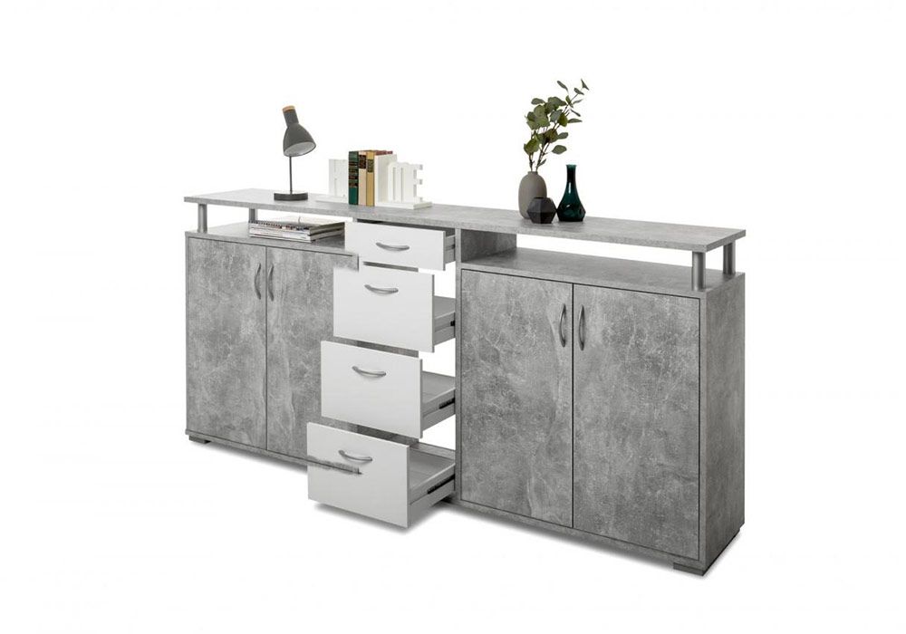Structure en panneau de particules, MDF coloris béton / blanc.