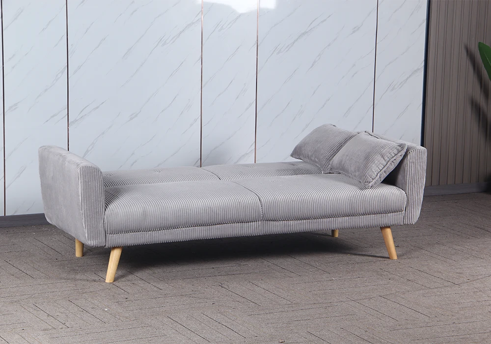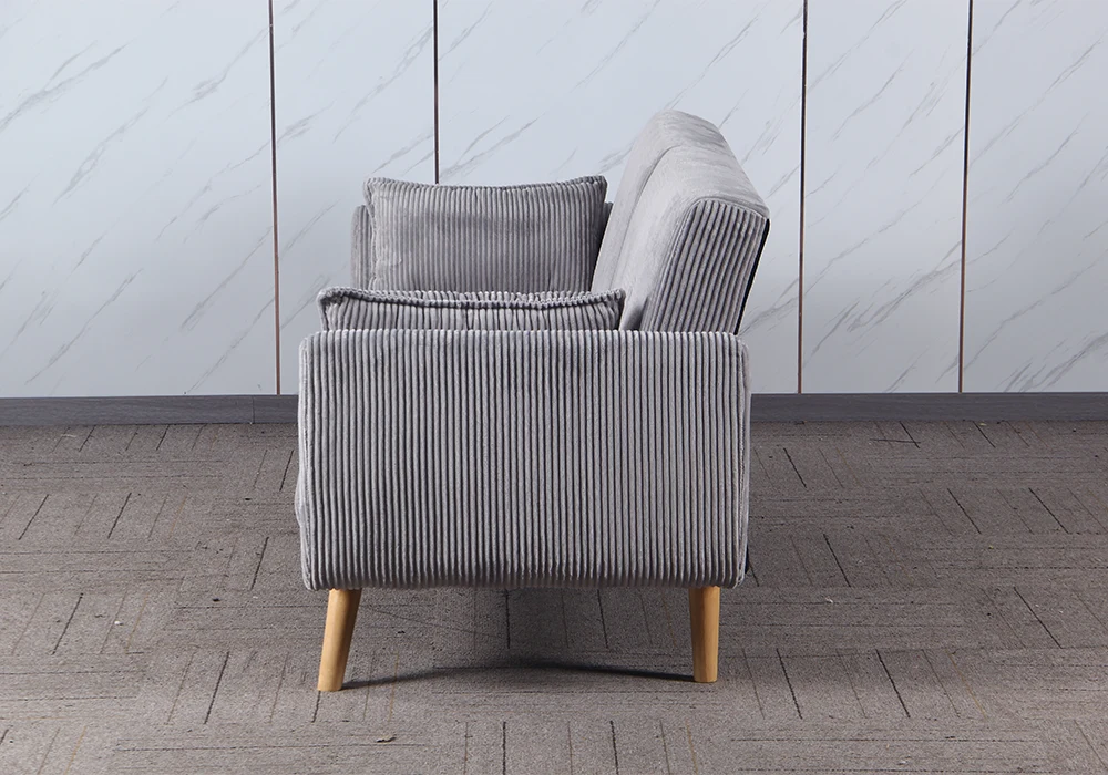 Son assise en mousse confortable, recouverte d’un tissu microfibre côtelé épais coloris gris clair, offre un toucher agréable et une belle finition texturée. Le dossier généreux assure un bon maintien du dos, rendant cette banquette parfaitement adaptée à un usage quotidien.