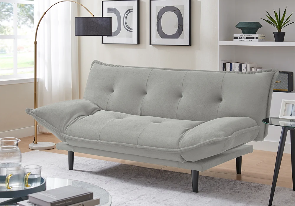 Transformez votre espace avec notre banquette clic-clac Siena élégante et polyvalente. Sa structure en bois et panneau de particules assure robustesse et durabilité, tandis que l’assise en mousse, façon futon, garnie de plumes, offre un confort exceptionnel.