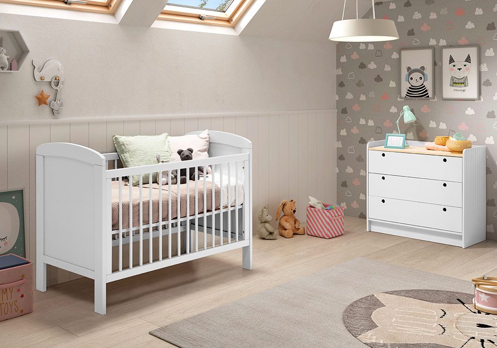 La forme minimaliste reposant sur une base en pin massif rend le design de ce lit bébé léger et souligne son caractère unique. Le blanc satiné rend ce berceau élégant et intemporel et offre de grandes possibilités pour le style et l’aménagement de la chambre.