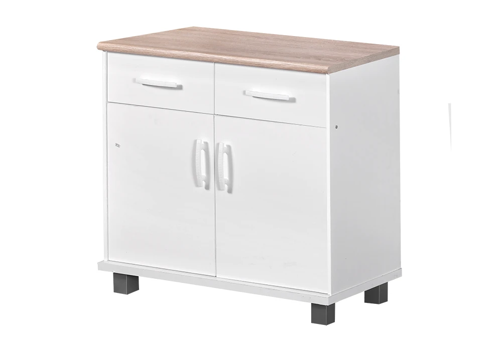Ajoutez une touche de modernité et de fonctionnalité à votre cuisine avec le buffet bas de la Collection Luna. Conçu avec une structure en panneau de particules de haute qualité, il est recouvert de papier coloris blanc et chêne, alliant élégance et durabilité.
