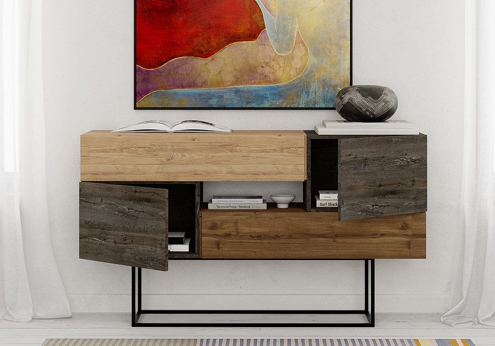 Buffet Bas 2 Portes 2 Tiroirs (Collection Titan Chêne/Marron/Noyer)