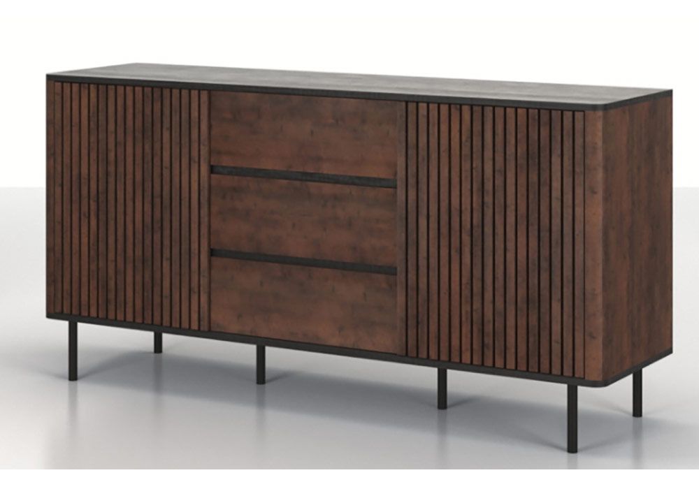 Idéal dans votre séjour, ce meuble enfilade au style industriel est équipé de 2 portes et 3 tiroirs très pratique orné d’une jolie façade. Ses pieds de couleur noir apportent une pointe de modernité à l’ensemble et lui assurent stabilité et solidité.