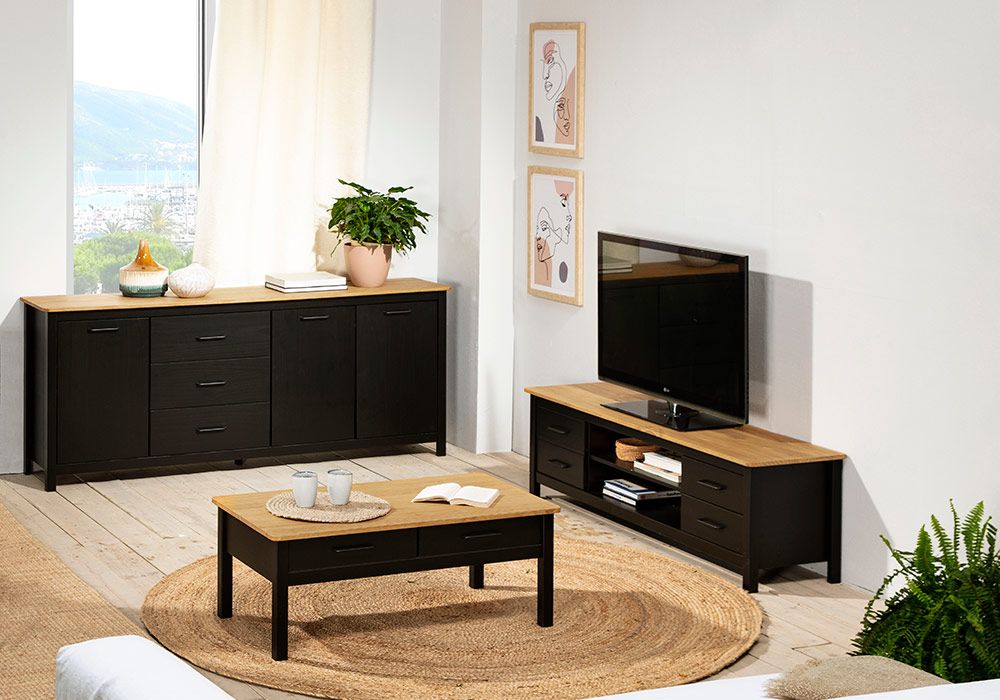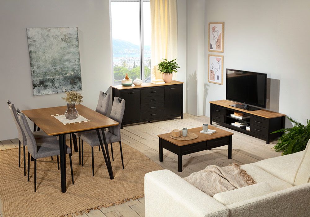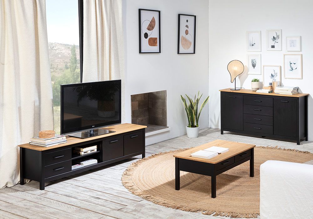 La collection VEGA s’inspire du style industriel qui lui donne un aspect très aéré et élégant. Avec ses nombreux rangements, le buffet bas 3 portes et 3 tiroirs aménage votre salon et votre salle à manger avec beaucoup de caractère tout en restant très fonctionnelle.