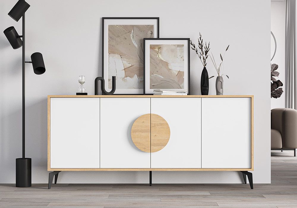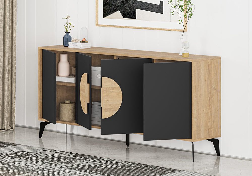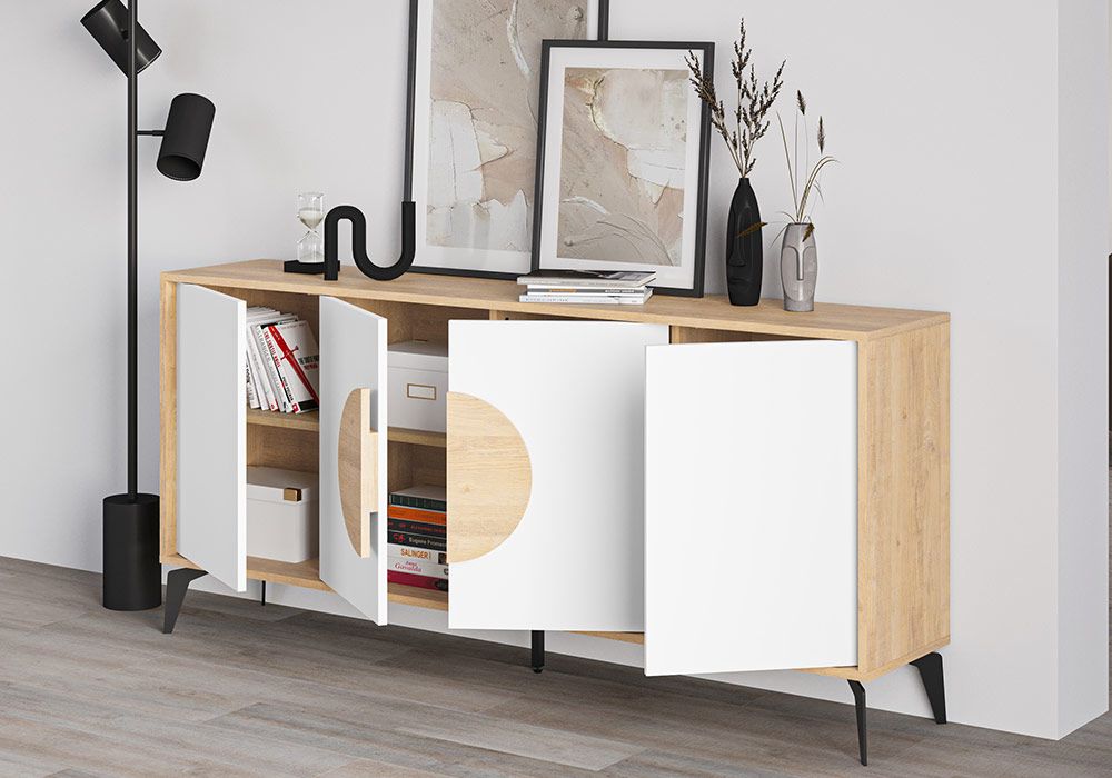 La silhouette du bahut VAE lui confère une certaine légèreté et un charme certain. Ce meuble donnera un côté oriental à votre intérieur. Votre salle de repas s’en verra non seulement embellie mais en plus elle bénéficiera d’un espace de rangement pratique, ainsi, vous pourrez ranger vos couverts et vos accessoires derrière les 4 portes de ce buffet.
