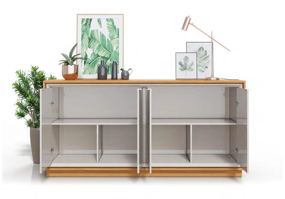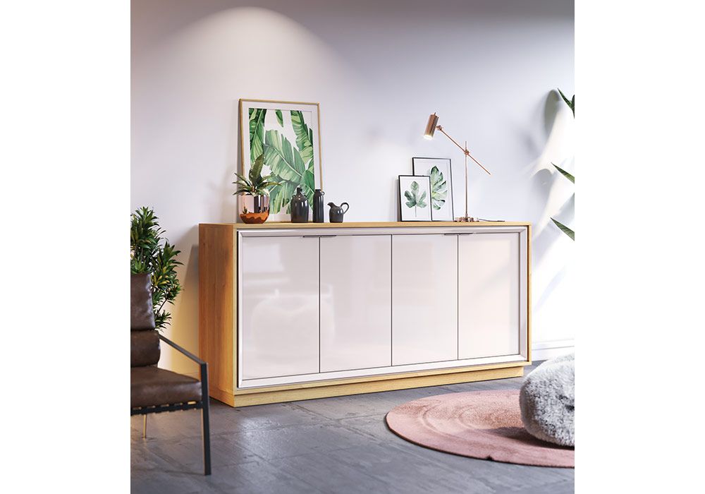 Le buffet bas Opéra au style scandinave, élégant et ergonomique grâce à ses rangements dissimulés sous 4 grandes portes blanches. Son aspect épuré lui permet de trouver sa place dans diverses pièces de votre intérieur.