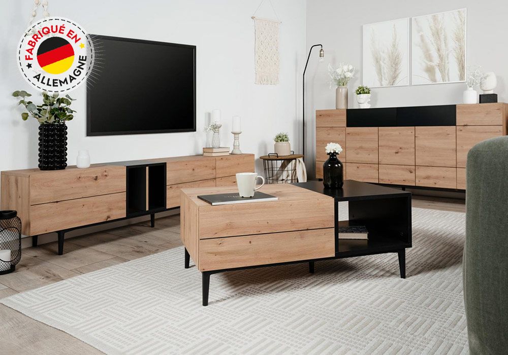 Ce somptueux buffet bas de la collection Nola embellira votre séjour et ajoutera une touche design à votre intérieur. Son aspect épuré lui permet de trouver sa place dans diverses pièces de votre intérieur. Trouvez la place idéal dans votre salon et complétez votre décoration à l’ambiance moderne et naturelle.