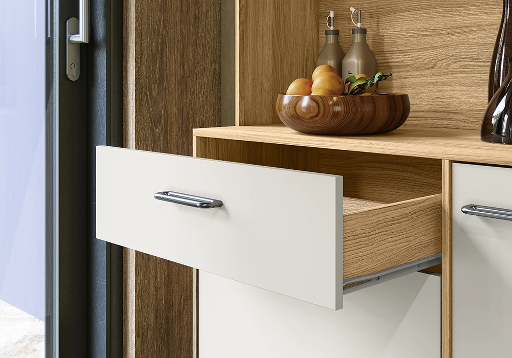Avec ses 4 portes et son tiroir spacieux, ce buffet de cuisine offre un espace de rangement généreux pour organiser vos ustensiles, vaisselle et autres accessoires. Son design épuré et sa finition soignée s’intègrent harmonieusement dans tout type de décoration, apportant une note de sophistication et de calme à votre intérieur.