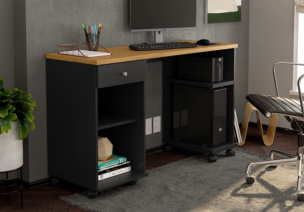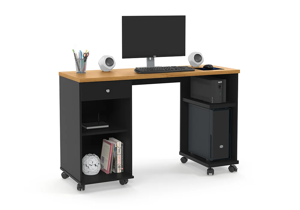 Le bureau Million incarne l’ingéniosité au service du quotidien. Compact et parfaitement pensé, il offre une solution de travail efficace sans sacrifier l’esthétique. Grâce à ses étagères intégrées et son espace dédié pour unité centrale, chaque élément trouve sa place dans un agencement harmonieux.