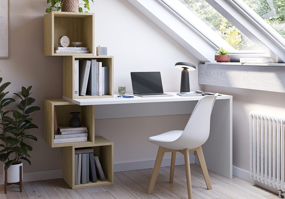 Rendez vos moments de travail agréable avec le bureau étagères Cubik . Ce bureau est intégré avec une étagère cube. Il est idéal pour être utilisé si vous effectuez du télétravail, car il est très fonctionnel grâce à ses nombreuses étagères.