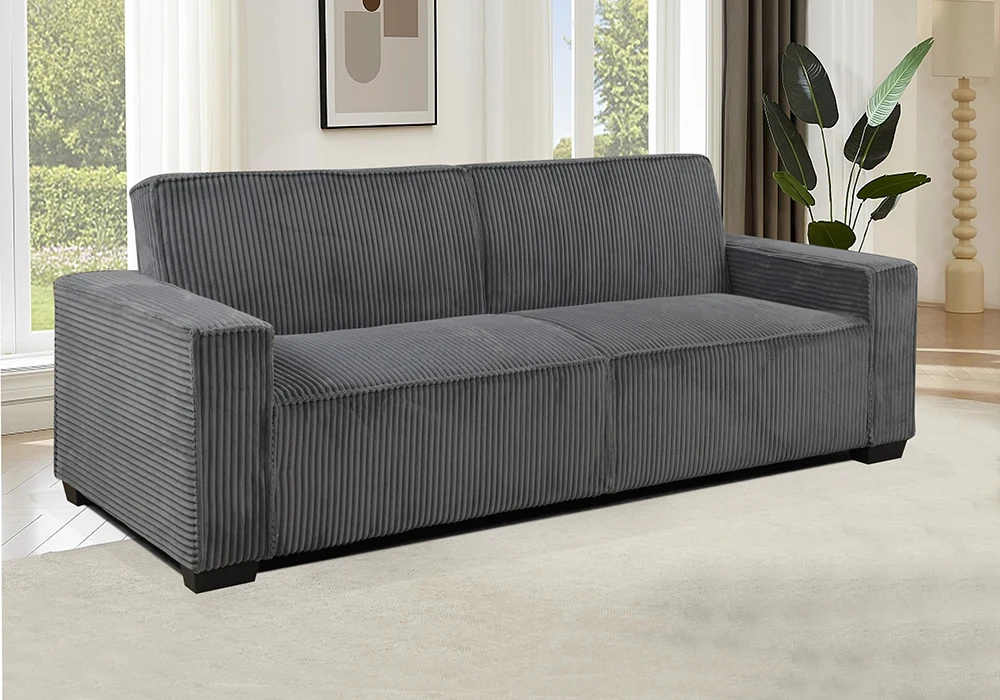 Revêtu d’un tissu microfibre côtelé épais, doux au toucher et résistant à l’usage, ce modèle est disponible en noir profond ou en gris foncé, 2 teintes intemporelles qui s’intègrent facilement dans tous les styles d’intérieur.