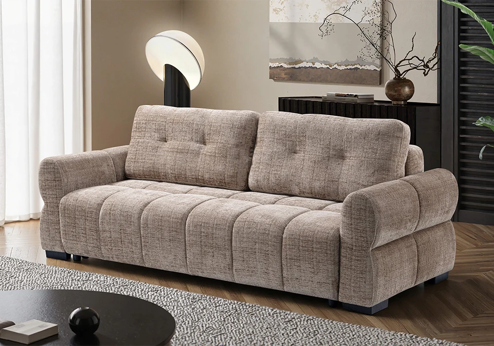 Le canapé convertible Diana est la solution idéale pour allier confort, style et praticité dans votre salon. Grâce à sa structure en panneaux de particules et son assise en mousse polyuréthane, il offre une assise agréable et durable. Son revêtement en tissu microfibre apporte douceur et facilité d’entretien, en coloris gris ou marron.