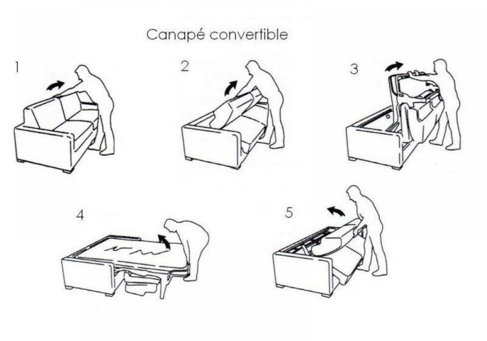 Dimension couchage: 140x190cm. Hauteur du matelas 12cm. Porte coussins à l’intérieur du dossier. Structure en aggloméré épaisseur 18 mm, bandes de hêtre/sapin. Matelas en mousse de polyuréthane densité 28kg haute densité indéformable.Tissus microfibre avec traitement anti bactérien. Suspension dossier en sangle élastique tressée. Rembourrage : Assise en polyuréthane expansé 25kg/m3. Dossier en polyuréthane expansé 18kg/m3.