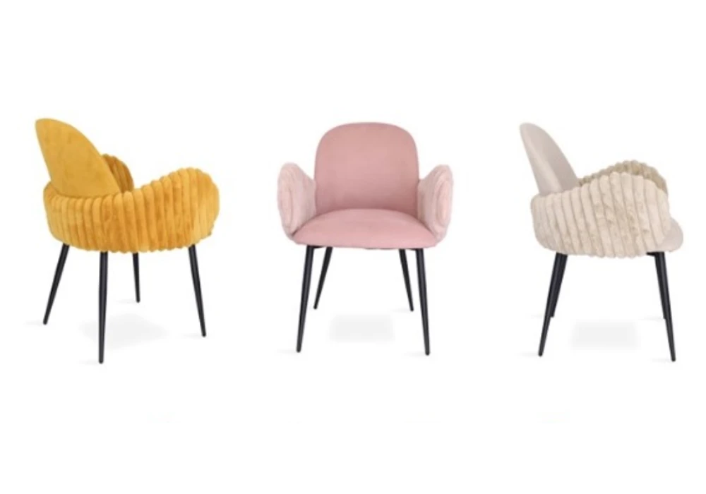 La chaise Absolem se distingue par son design contemporain et ses lignes épurées. L’assise en tissu côtelé épais ajoute une touche de sophistication, tandis que la structure en métal apporte une note industrielle chic. Que vous optiez pour le beige apaisant, le jaune vibrant ou le gris intemporel, cette chaise s’intégrera parfaitement à votre espace, offrant à la fois style et confort.