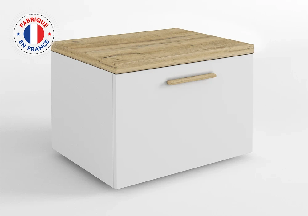 Compact et pratique, ses dimensions sont idéales pour les petits espaces. Le contraste entre le blanc pur et le bois naturel s’intègre parfaitement dans tout type de décoration intérieure. Le tiroir offre un espace de rangement pratique pour vos livres, lunettes ou autres objets personnels.