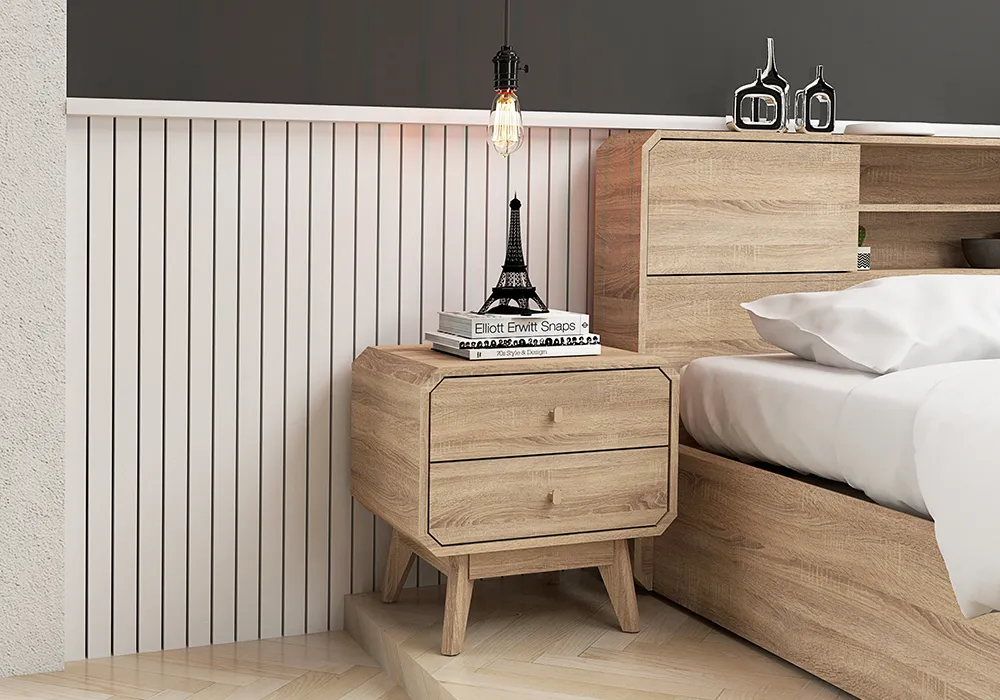 Structure en panneau de particules mélaminé recouvert de papier décor oak.