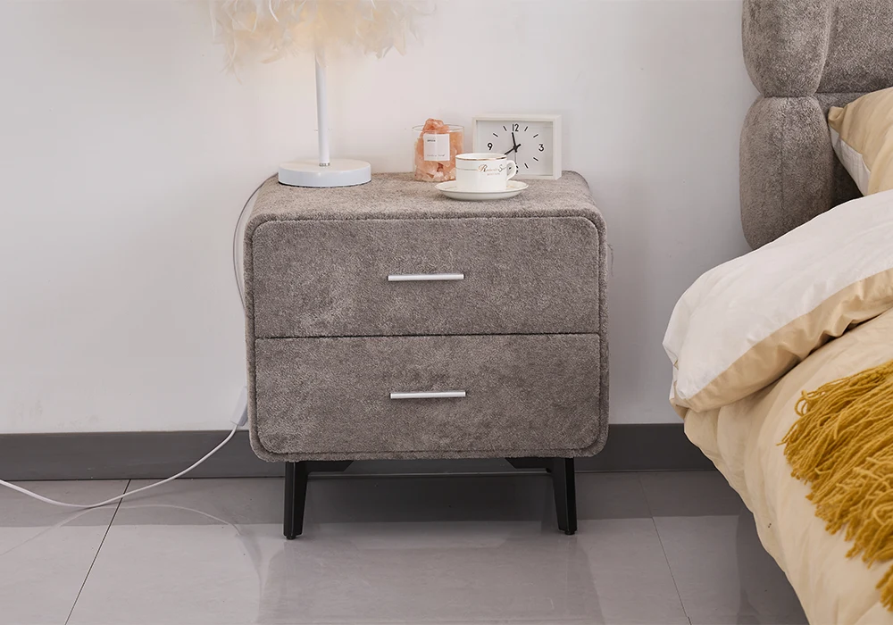 Recouvert d’un tissu doux et texturé, le chevet LAMI offre un toucher agréable et un rendu visuel élégant. Les poignées discrètes et les pieds fins et stables renforcent son esthétique légère et moderne.