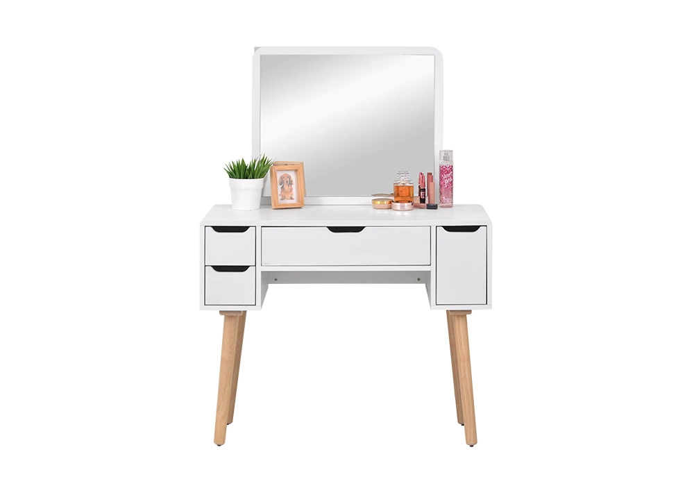 Les 4 tiroirs spacieux offrent un rangement optimal pour tous vos produits de beauté, accessoires et bijoux, vous permettant de garder votre espace bien organisé et esthétique. Son design épuré et moderne, combiné à une finition soignée, fait de cette coiffeuse un ajout parfait pour votre chambre ou votre dressing, alliant praticité et élégance.