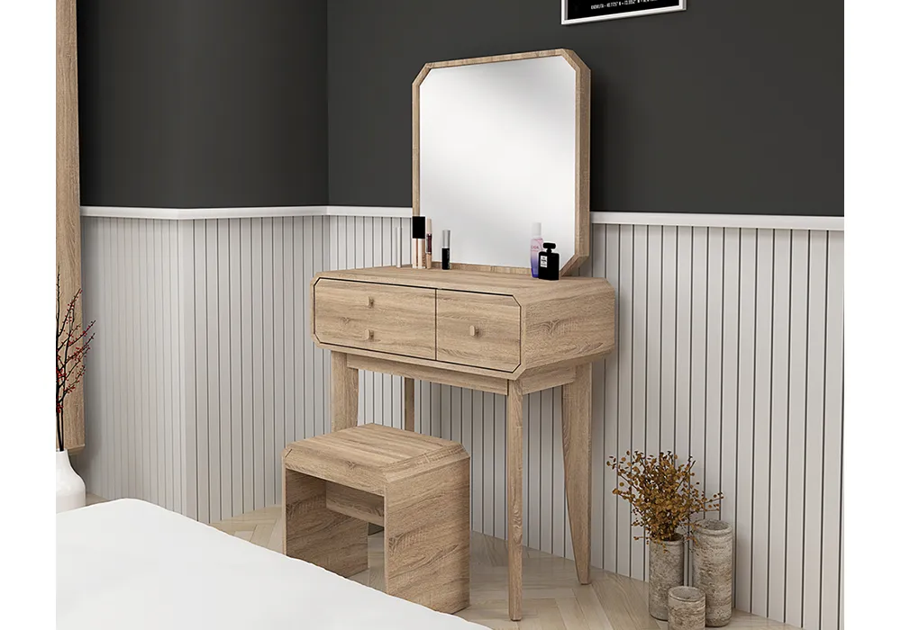 Structure en panneau de particules mélaminé recouvert de papier décor oak.