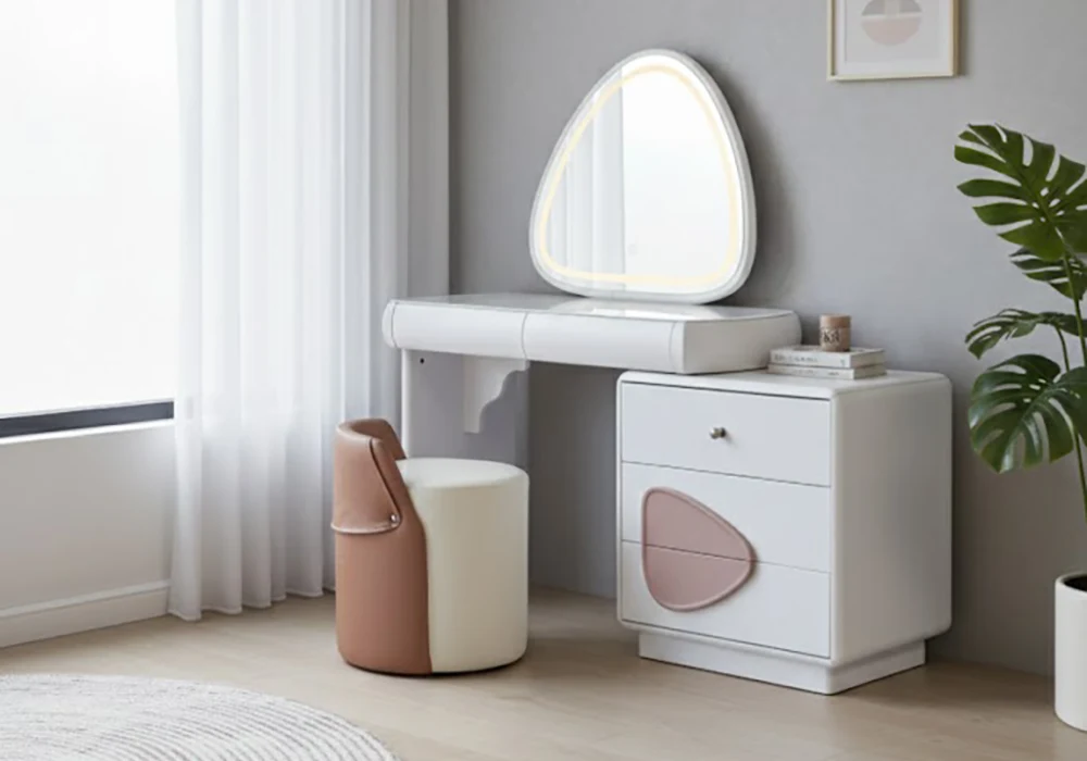 Avec ses lignes arrondies, son rendu moderne et sa fonctionnalité complète, la coiffeuse LED PRETIA est parfaite pour aménager une chambre ou un coin beauté élégant, lumineux et bien organisé.