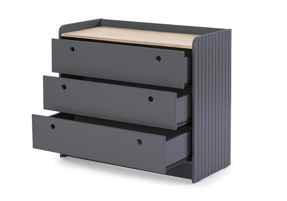 Cette commode de la Collection Monte au style sobre et épuré combine la couleur gris anthracite et le blanc pour un effet chic et lumineux. Ce meuble de rangement est doté de 3 tiroirs qui vous permettront d’y ranger un maximum de linge et accessoires. Cette commode design saura vous séduire grâce à son allure rétro moderne et ses pieds qui lui lui insufflent un charme raffiné.
