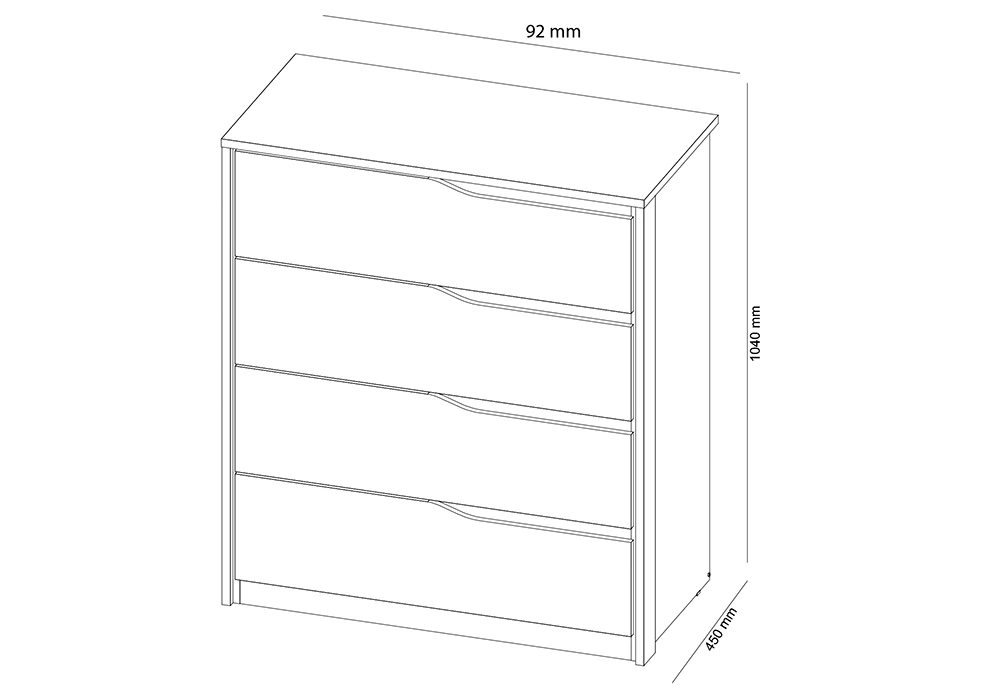 La commode Atria trouvera aisément sa place dans un univers moderne et chaleureux. Les lignes simples et les couleurs intemporelles apporteront une touche très chic à votre chambre. Dotée de 4 tiroirs, ce meuble de rangement est également très fonctionnelle.