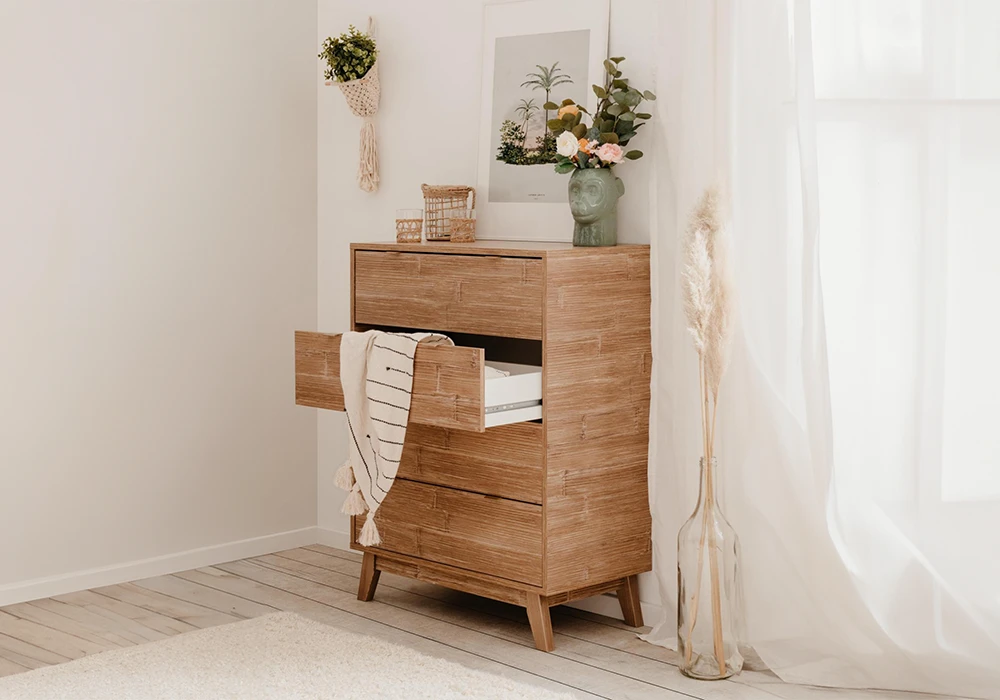 Transformez votre espace de vie avec cette commode pratique et stylée, qui allie fonctionnalité et beauté naturelle.
