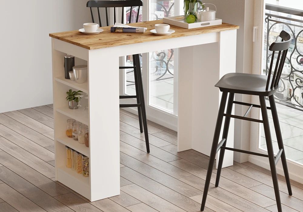 Magnifiez le décor de votre espace avec cette table comptoir pour votre salle à manger. Le comptoir bar très fonctionnel et élégant sera idéal pour les petites salles à manger d’un appartement ou de pièces à taille réduite.