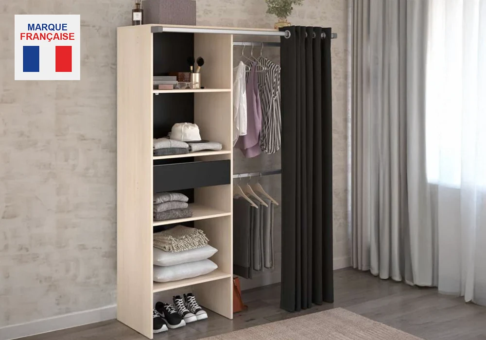 Conçu par une marque française, ce dressing allie fonctionnalité, durabilité et design naturel, pour un intérieur qui conjugue confort et caractère.