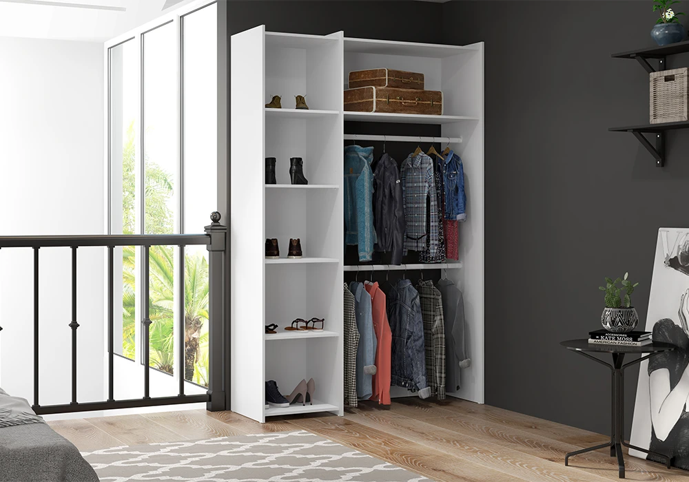 Vous manquez d’espace dans votre appartement ? Ce dressing offre un rangement supplémentaire pour les vêtements ou vos accessoires. Il se dote d’une partie penderie pour accrocher des robes et pantalons, et d’un côté lingère pour des chaussures ou des sacs.