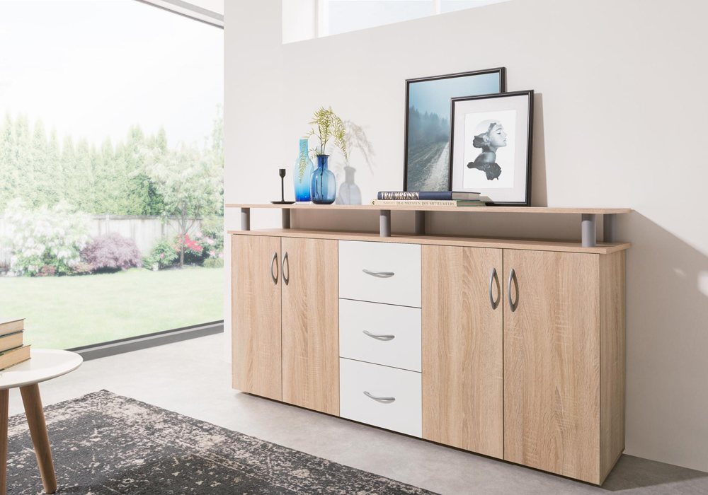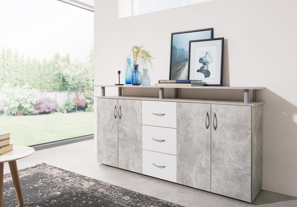 Sa longueur de 155 cm, vous garanti un bel espace de rangement. Pratique, ce meuble enfilade dispose de plusieurs espaces de rangements.