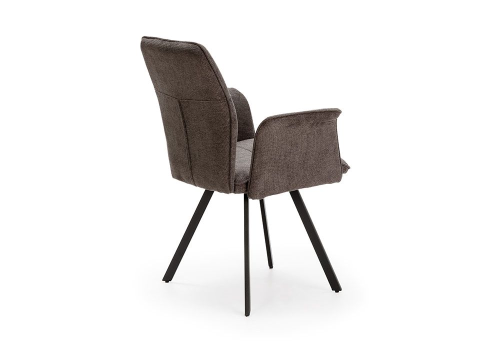 Les chaises et les fauteuils reposent sur un piétement en métal noir, alliant robustesse et sophistication. Ce design épuré est sublimé par un revêtement en tissu de couleur gris, offrant une touche de chaleur et de raffinement à votre espace.
