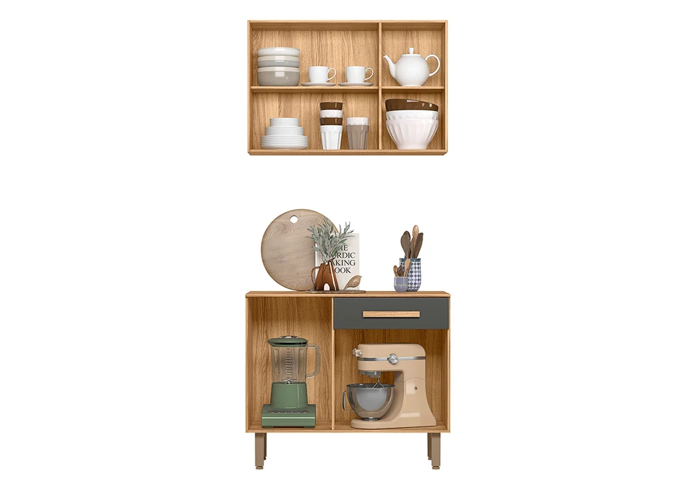 L’ensemble cuisine Combo Freijo Merisier / Gris est le choix idéal pour ceux qui recherchent une cuisine esthétique, pratique et durable, adaptée aux intérieurs modernes comme classiques.
