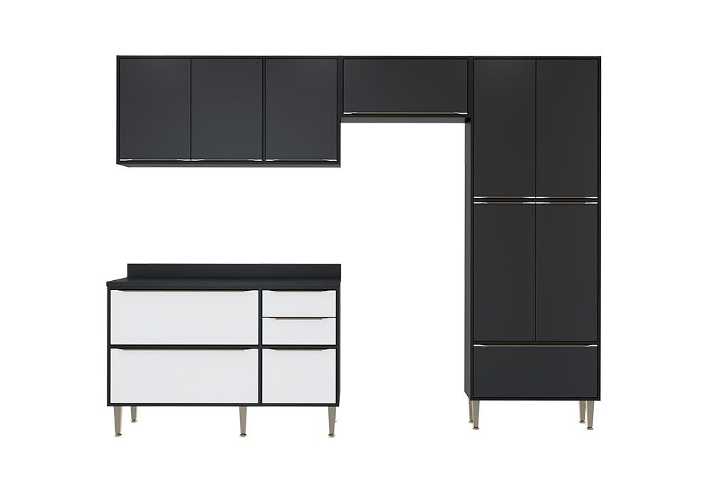 Une cuisine moderne dont le coloris blanc / noir des meubles offre une luminosité exceptionnelle pour votre cuisine, cette cuisine intégrée couvre une largeur de 2.60m en disposant de plusieurs modes de rangements, tiroir ou portes ainsi qu’un espace important dans la colonne haute.